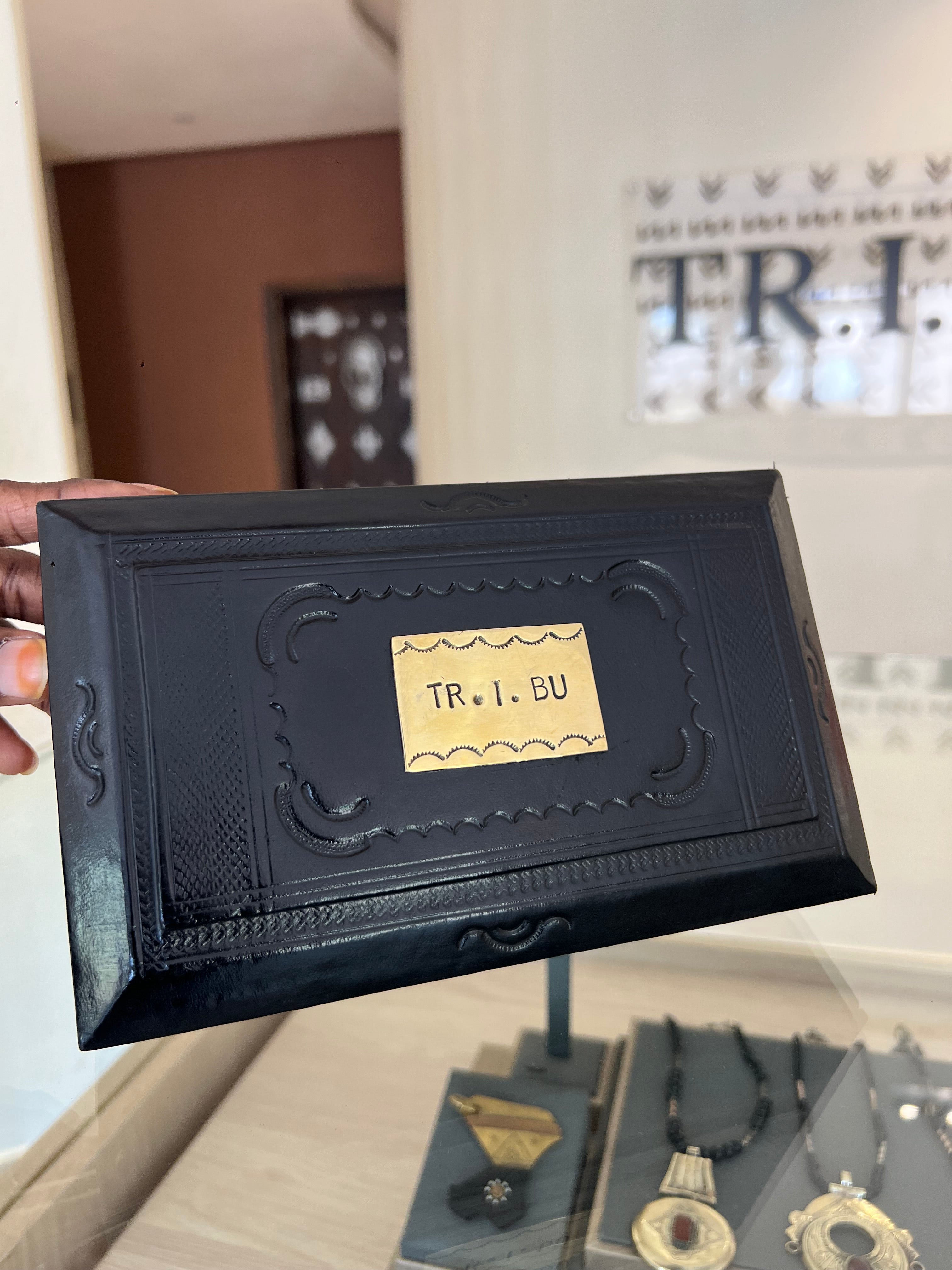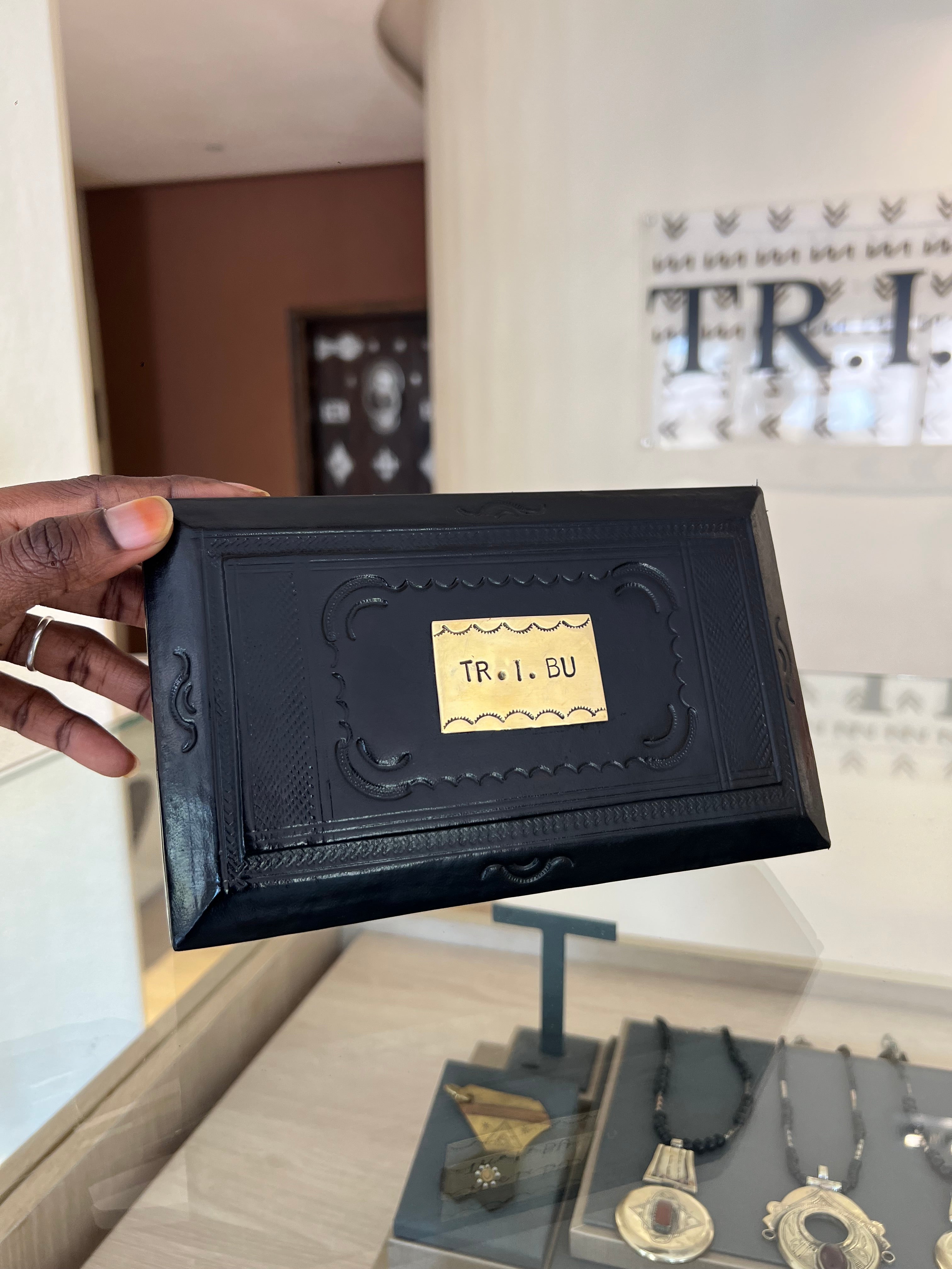 Sur le dessus, un stamp métallique délicatement gravé affiche fièrement la marque TR.I.BU, ajoutant une touche d’authenticité et de prestige.
