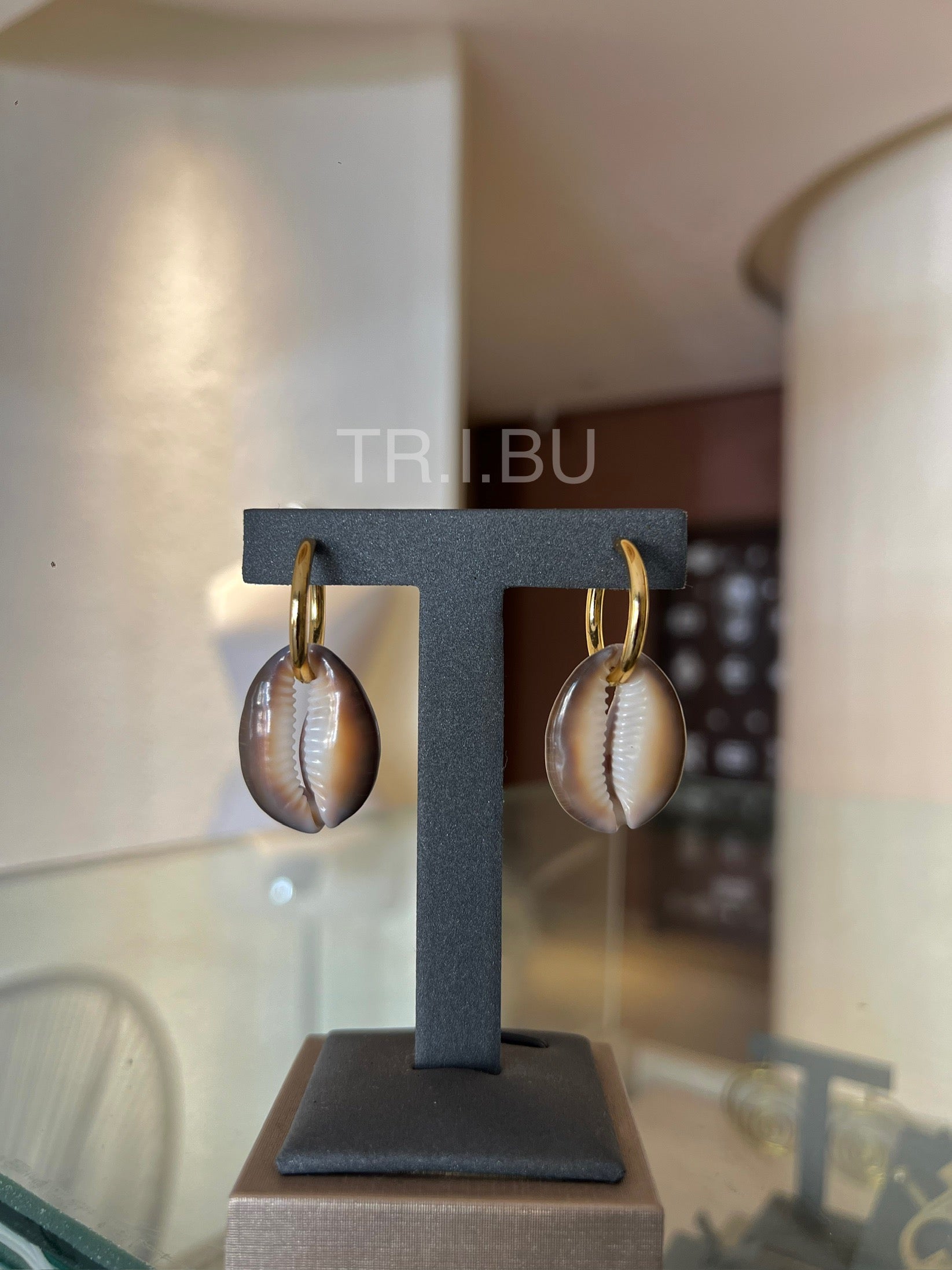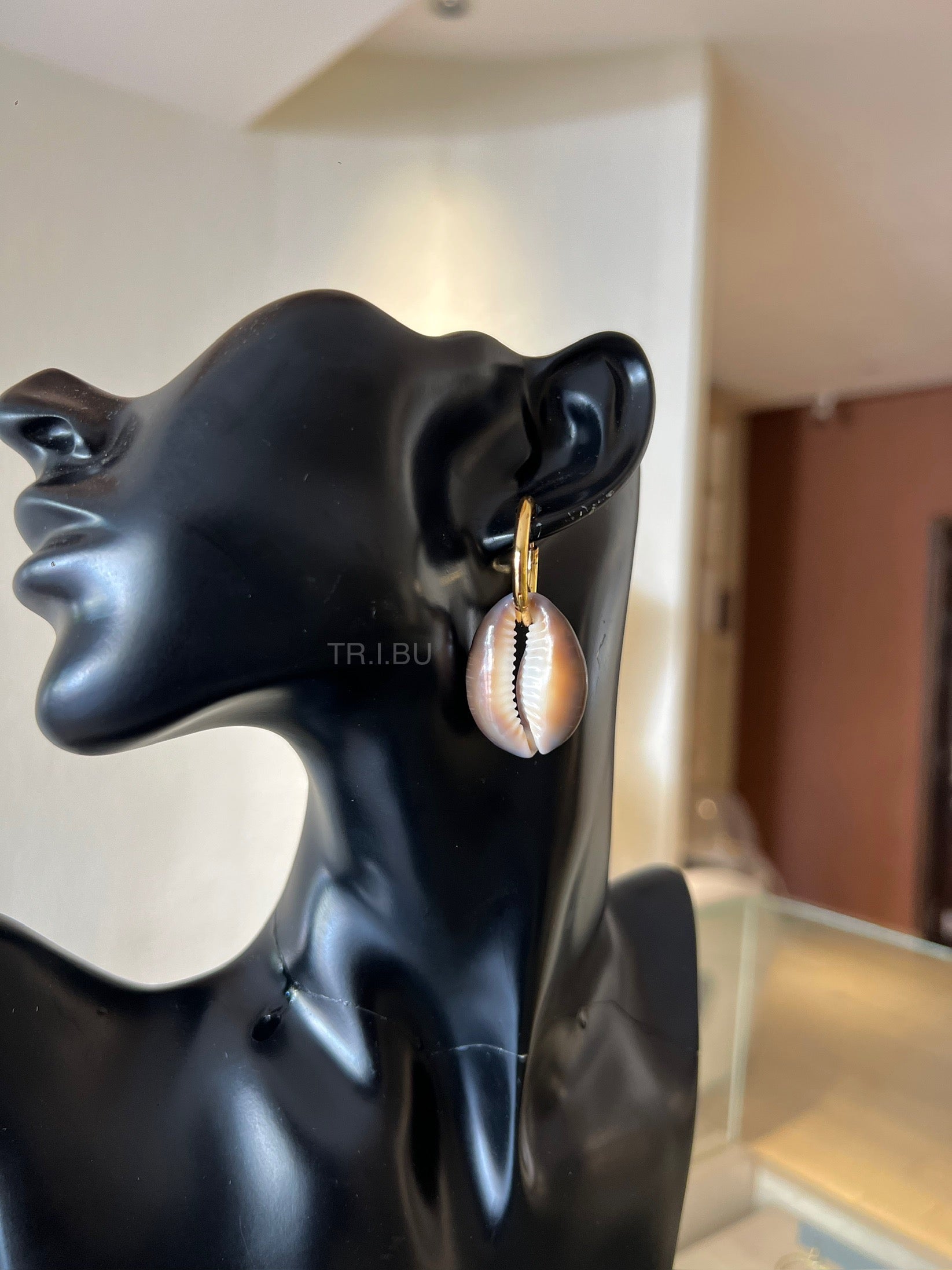 Boucles d’oreilles en anneaux dorés, ornées de cauris naturels, alliant simplicité et élégance pour un style authentique et intemporel.