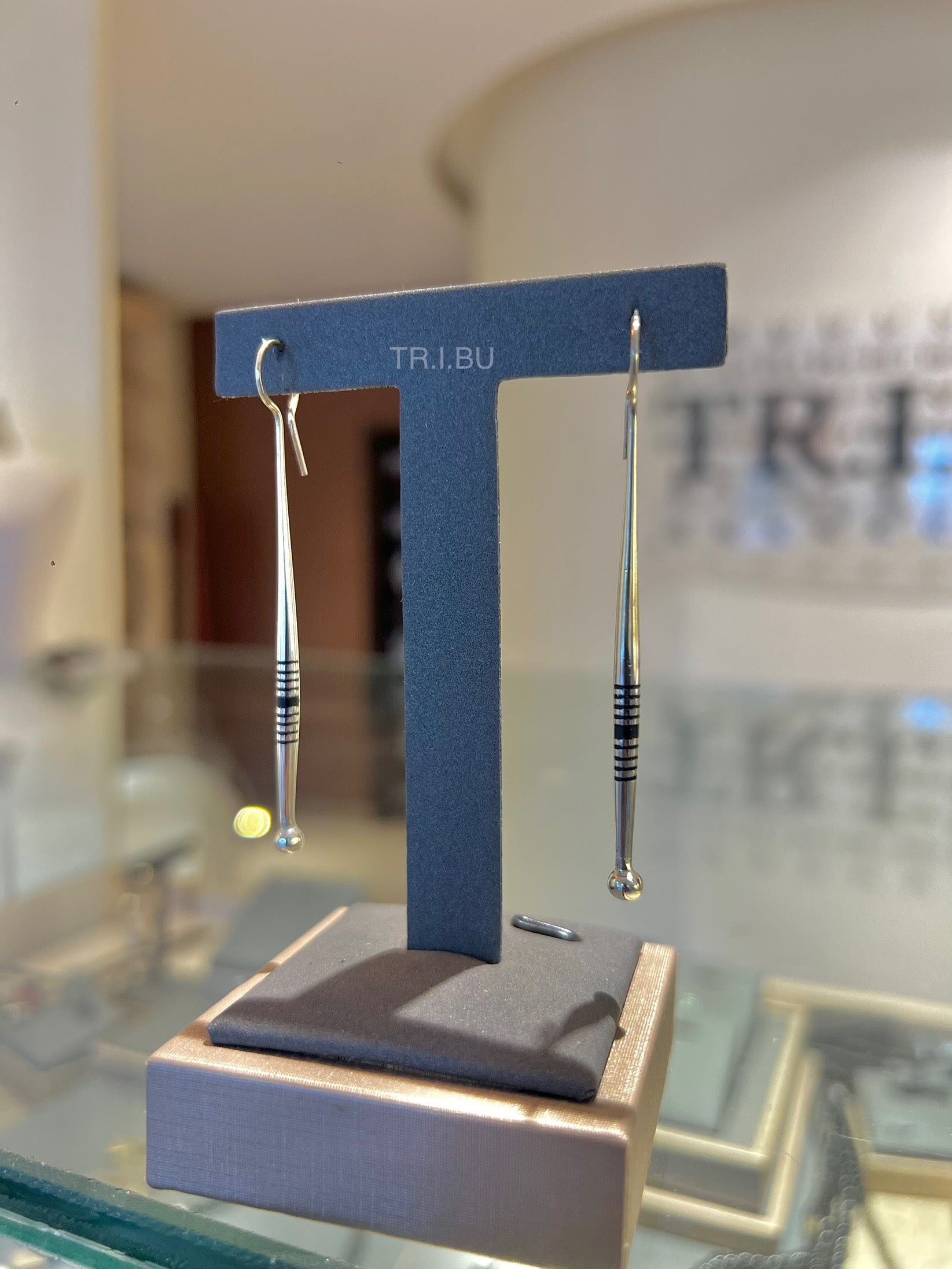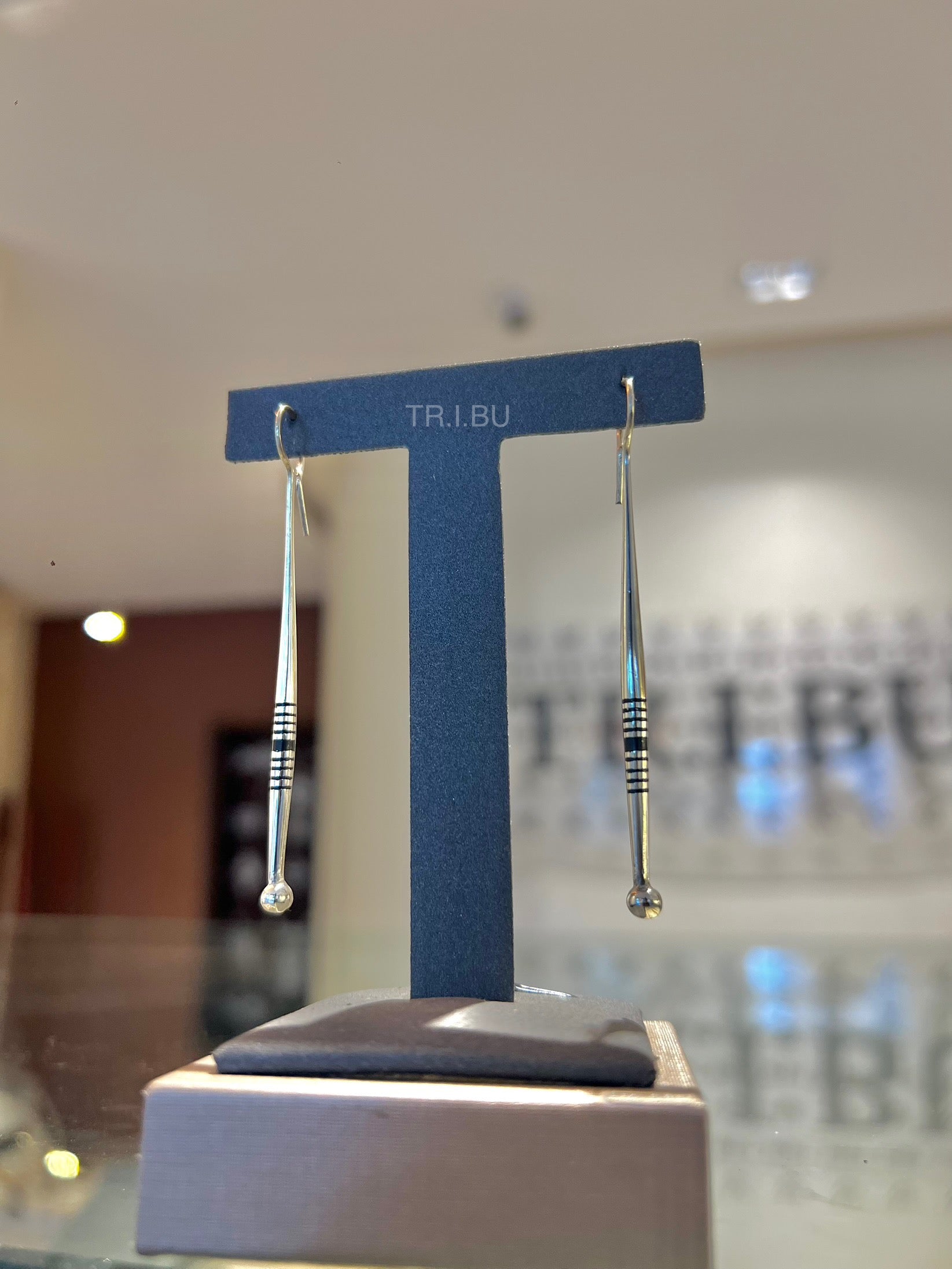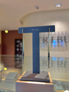 Boucles pendantes fines et élancées, terminées par une petite sphère. Leur design minimaliste et moderne apporte une élégance subtile et raffinée.