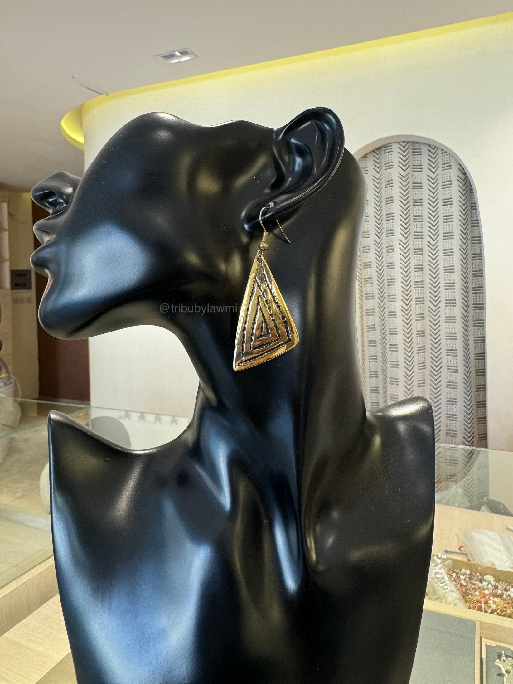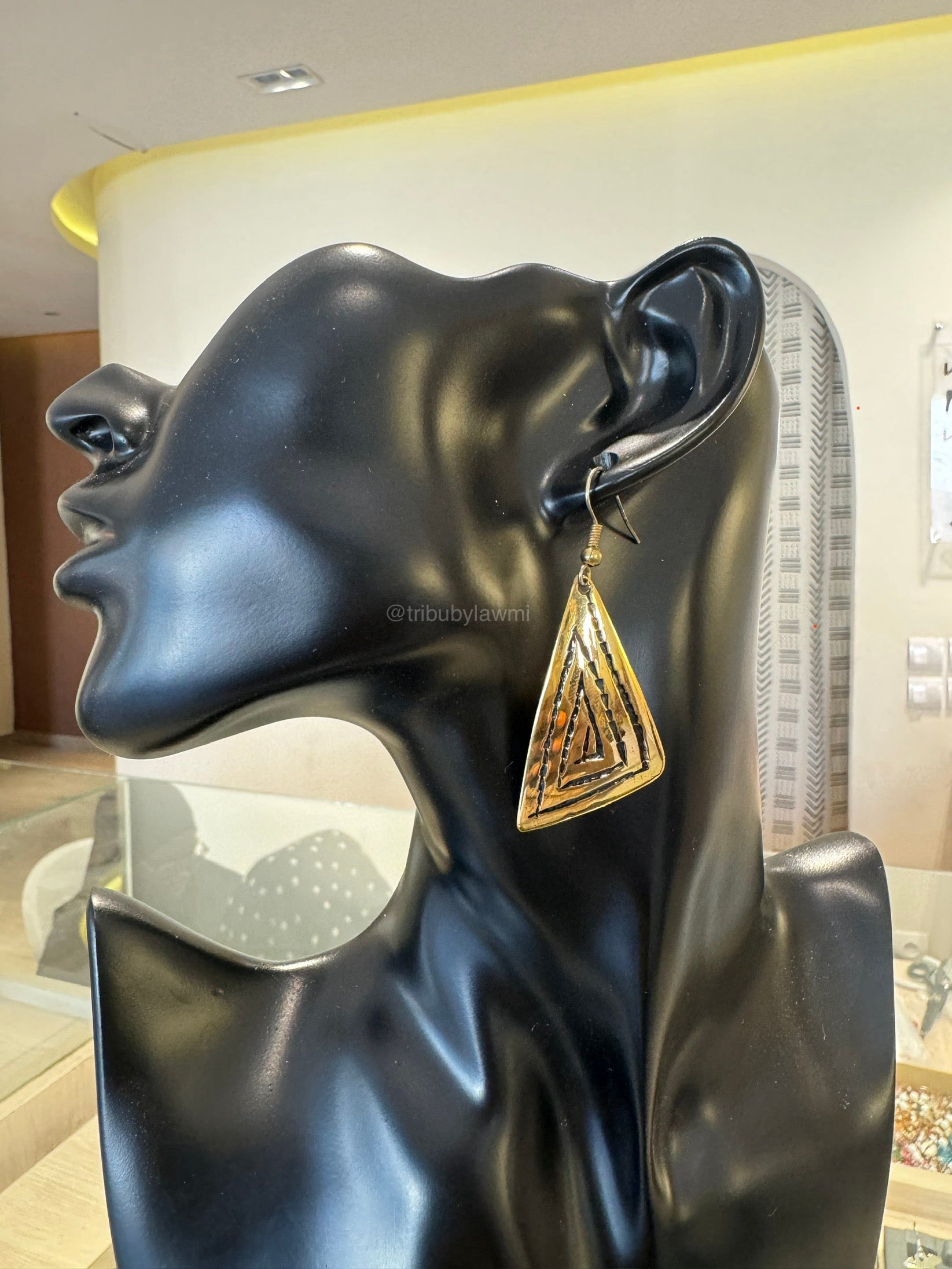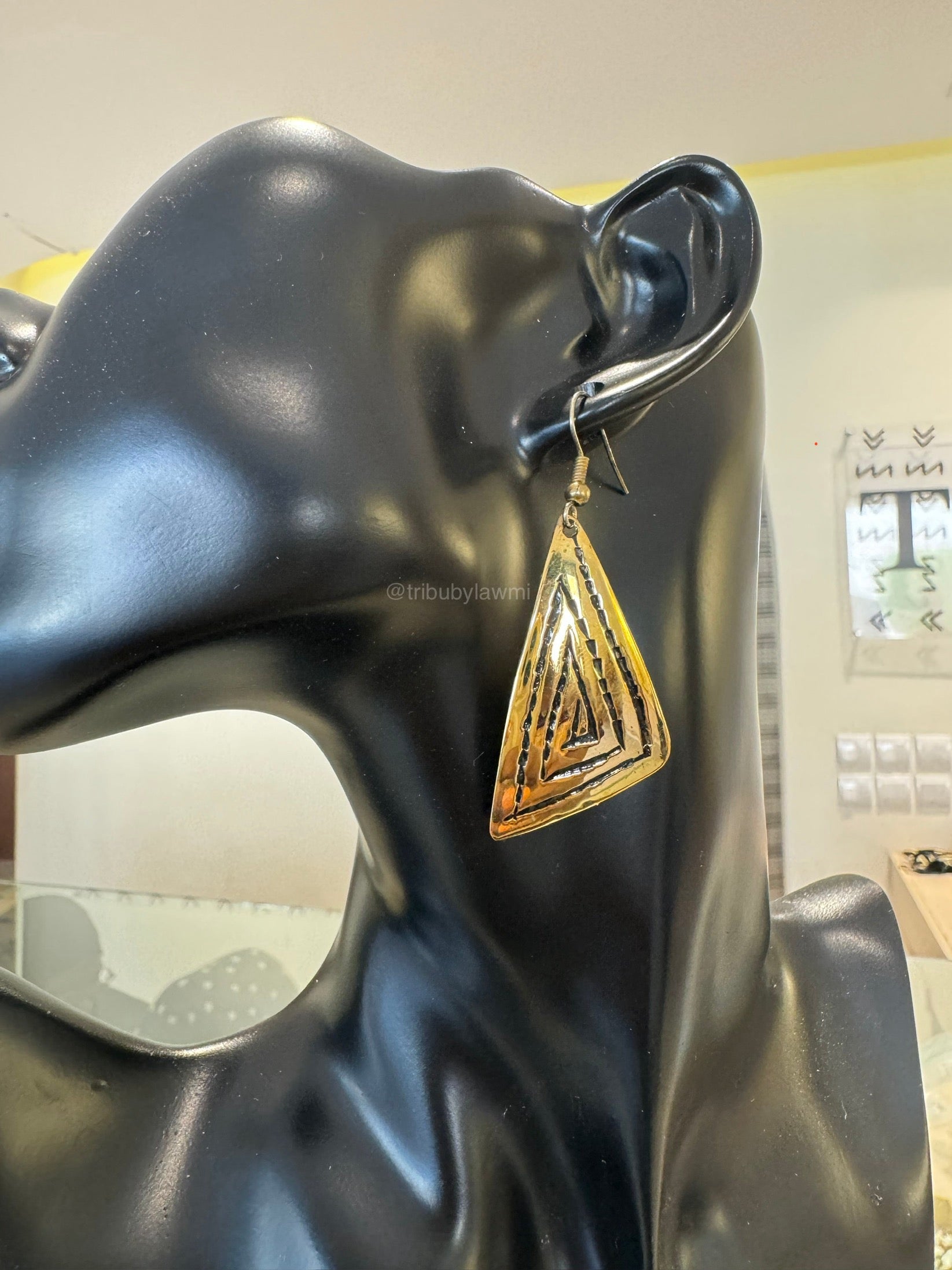 Boucle d’oreille dorée artisanale en forme de triangle