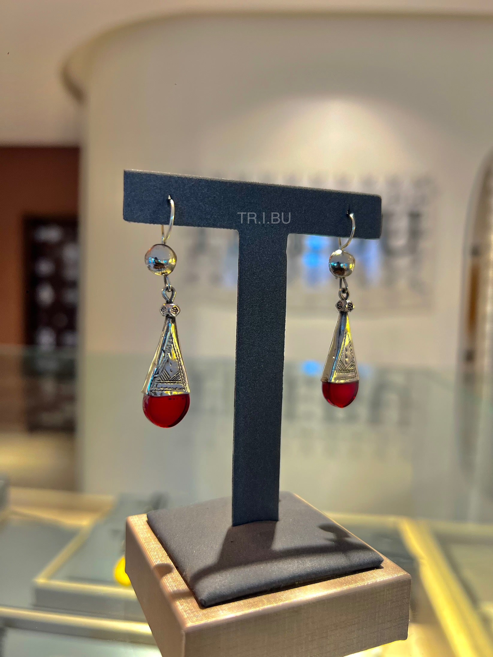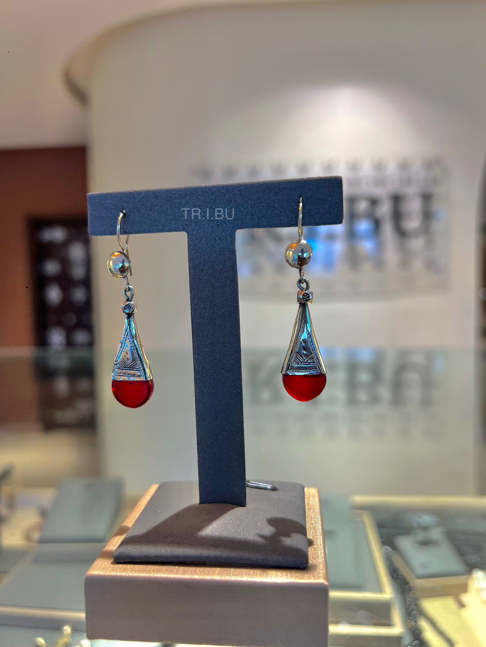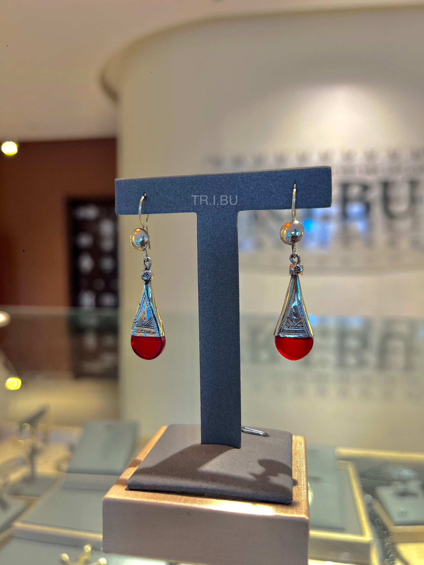 Boucles pendantes en forme de gouttes rouge, sublimées par un capuchon argenté finement travaillé. Élégantes et lumineuses, elles ajoutent une touche de fraîcheur et de raffinement à vos looks.