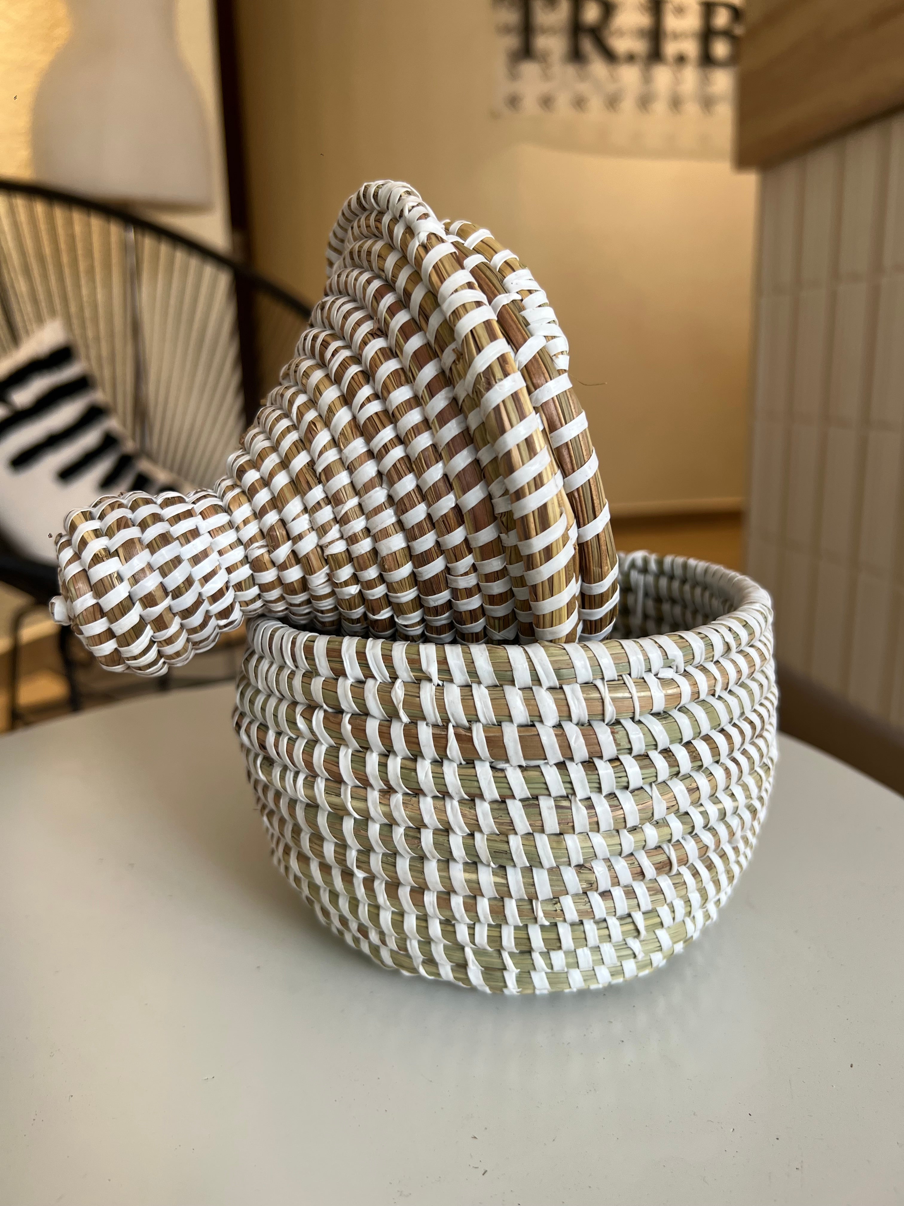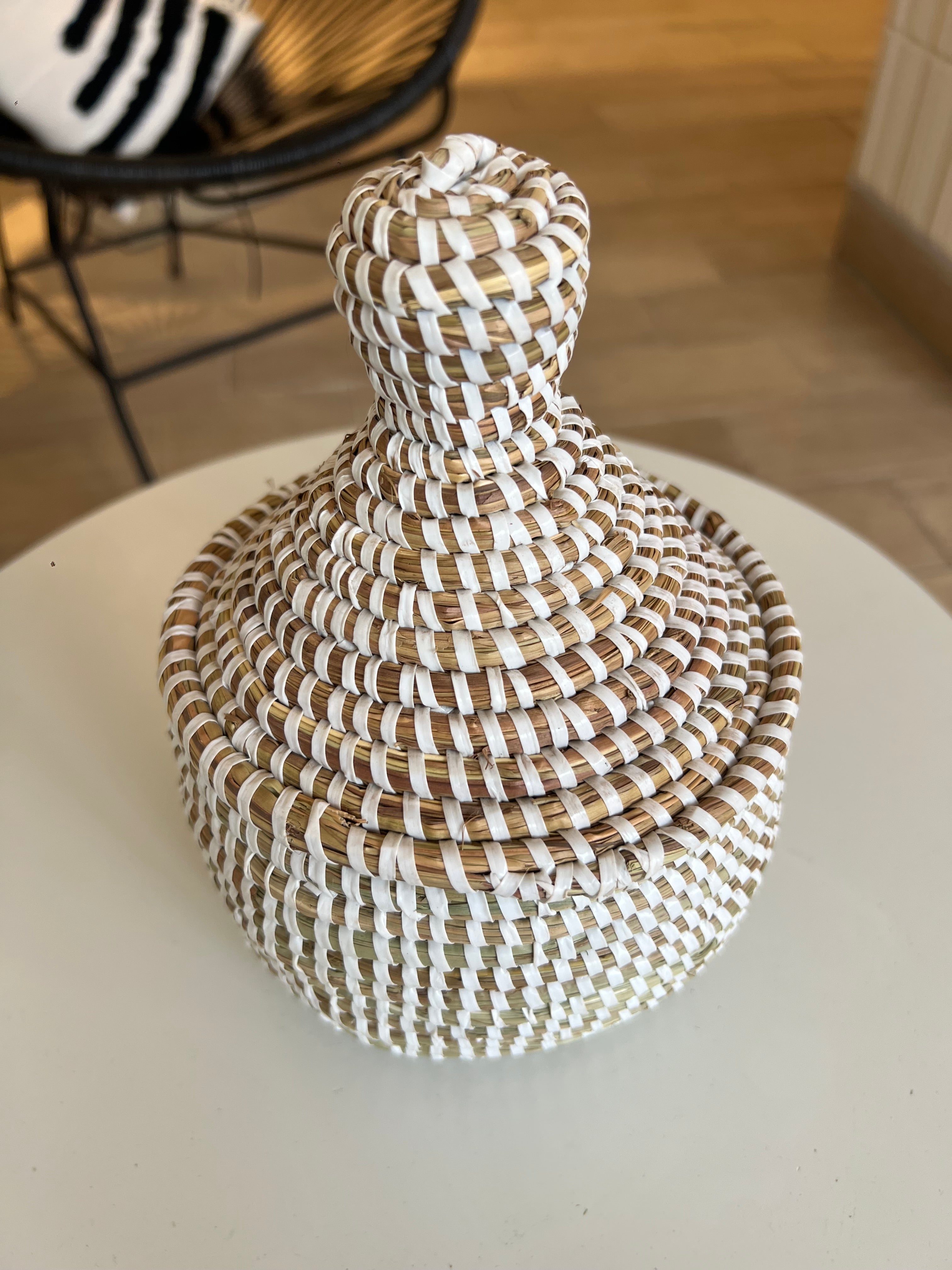 Le panier traditionnel, tissé à la main selon des techniques ancestrales, allie robustesse et légèreté. Ses courbes élégantes et ses anses pratiques en font un objet polyvalent, parfait pour ranger des affaires ou servir de décoration. Son allure authentique et sa texture chaleureuse apportent une touche traditionnelle, intemporelle et pleine de charme à tout intérieur.