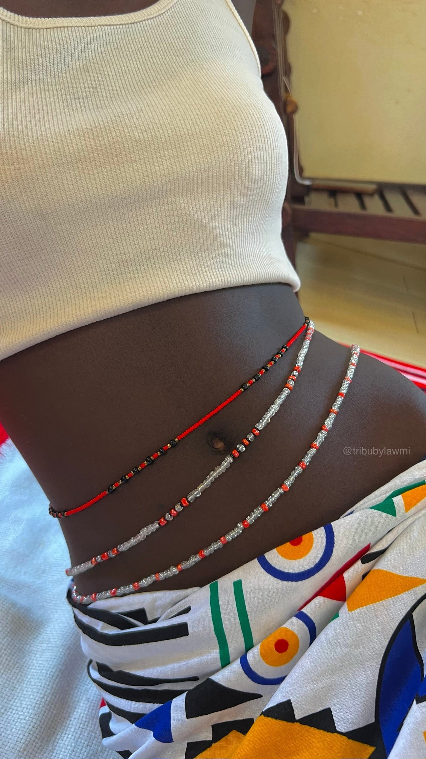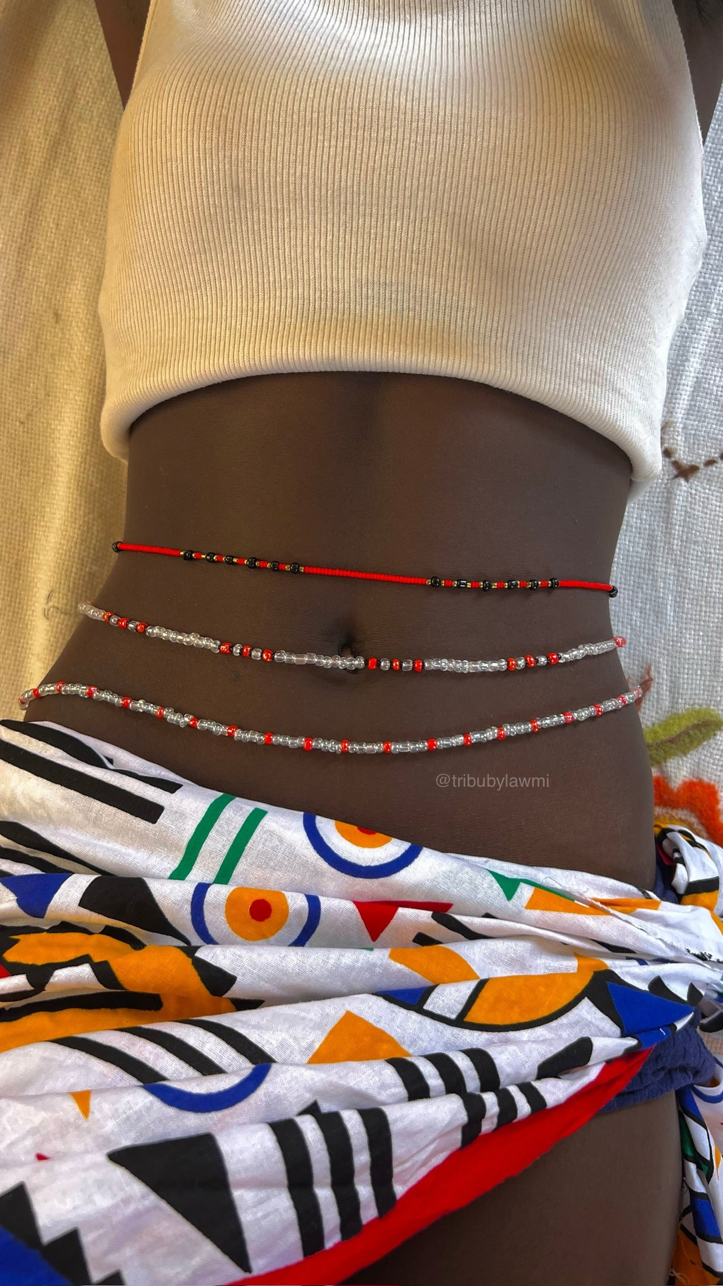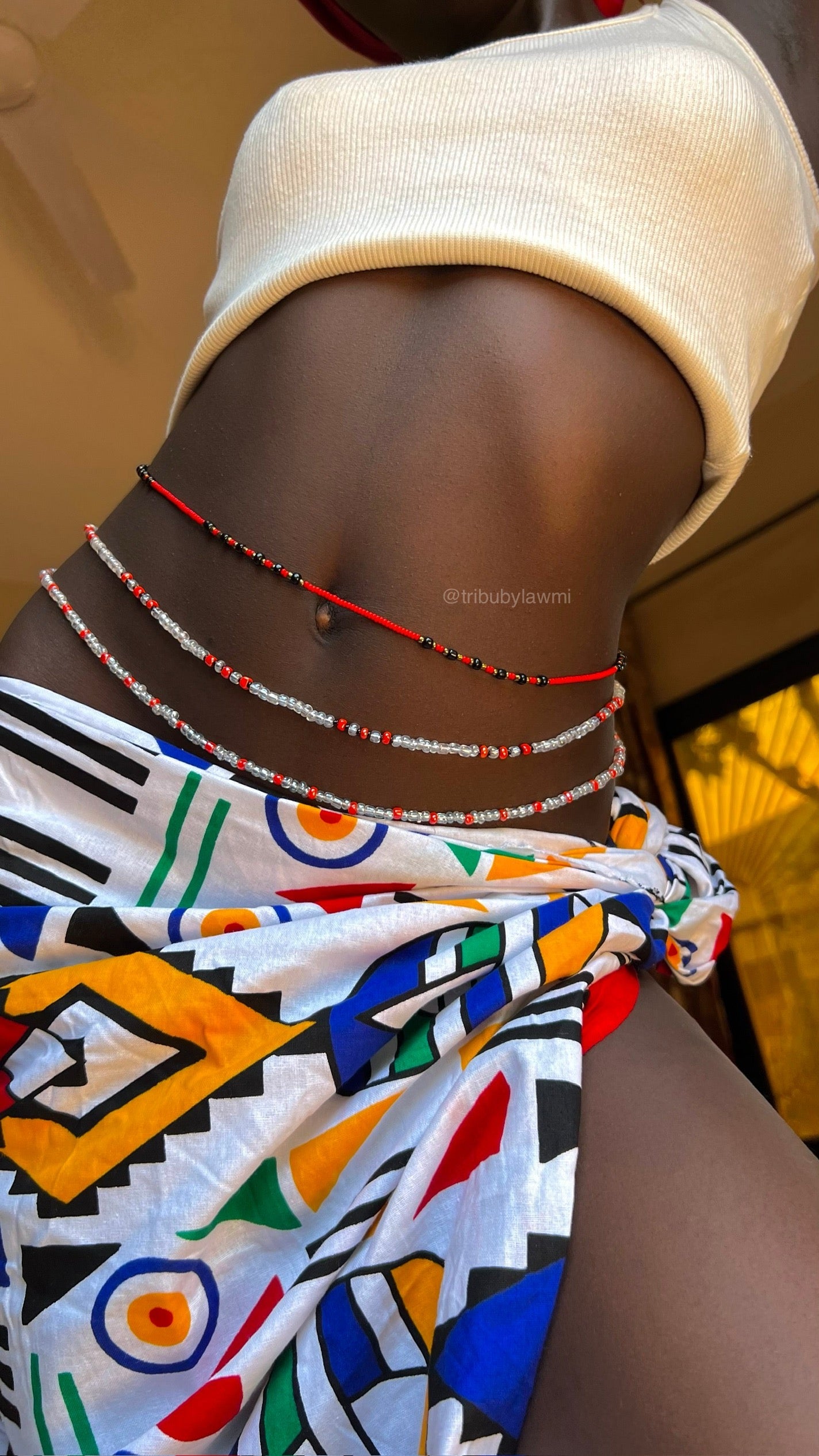 Mesurez vous en bas du nombril et sélectionnez la taille qui vous correspond. Cette mesure correspondra à la pièce maîtresse de l’ensemble. Nous enlèverons 2cm sur les 2 autres pièces pour obtenir l’effet décalé comme sur nos mannequins.