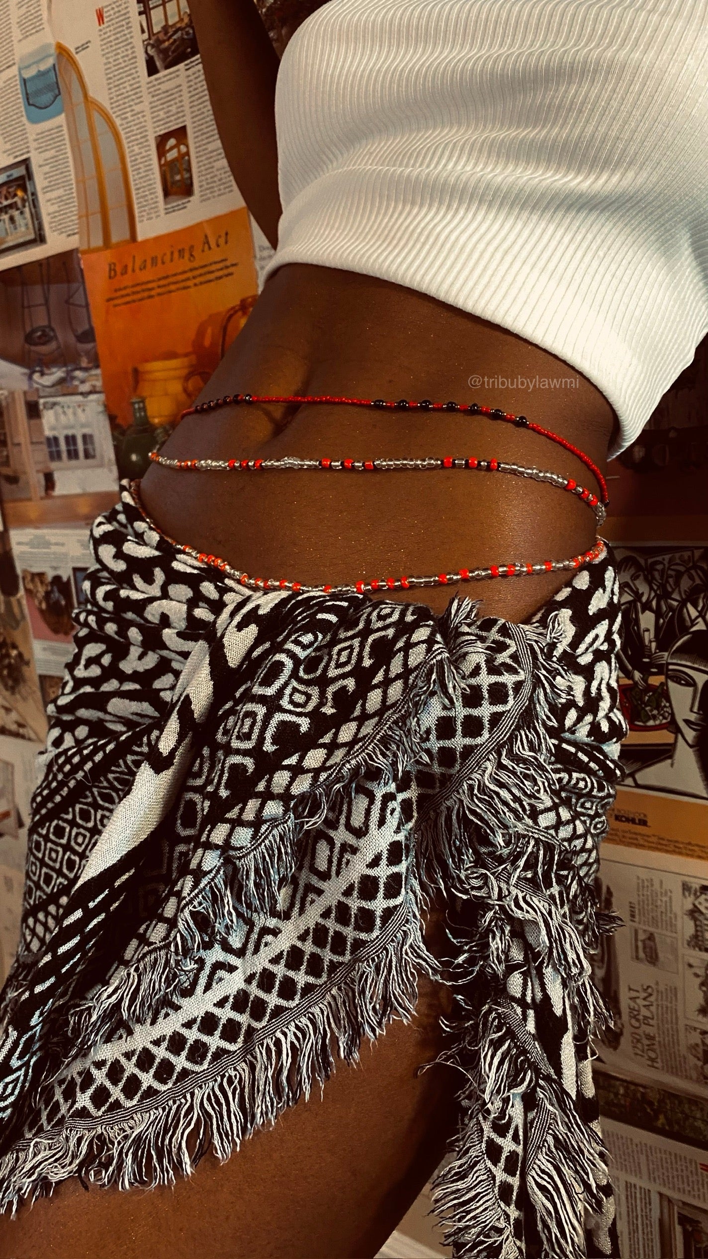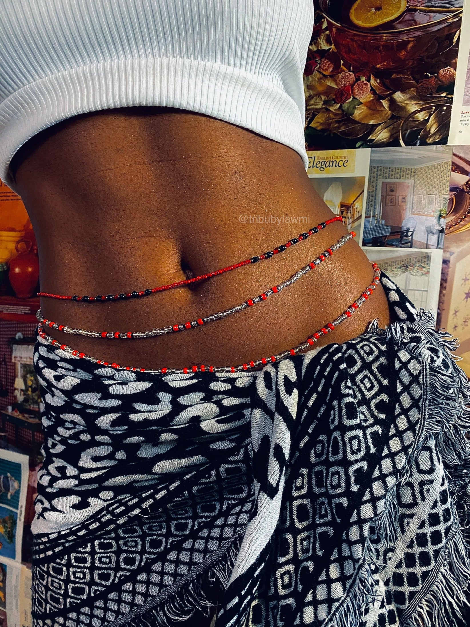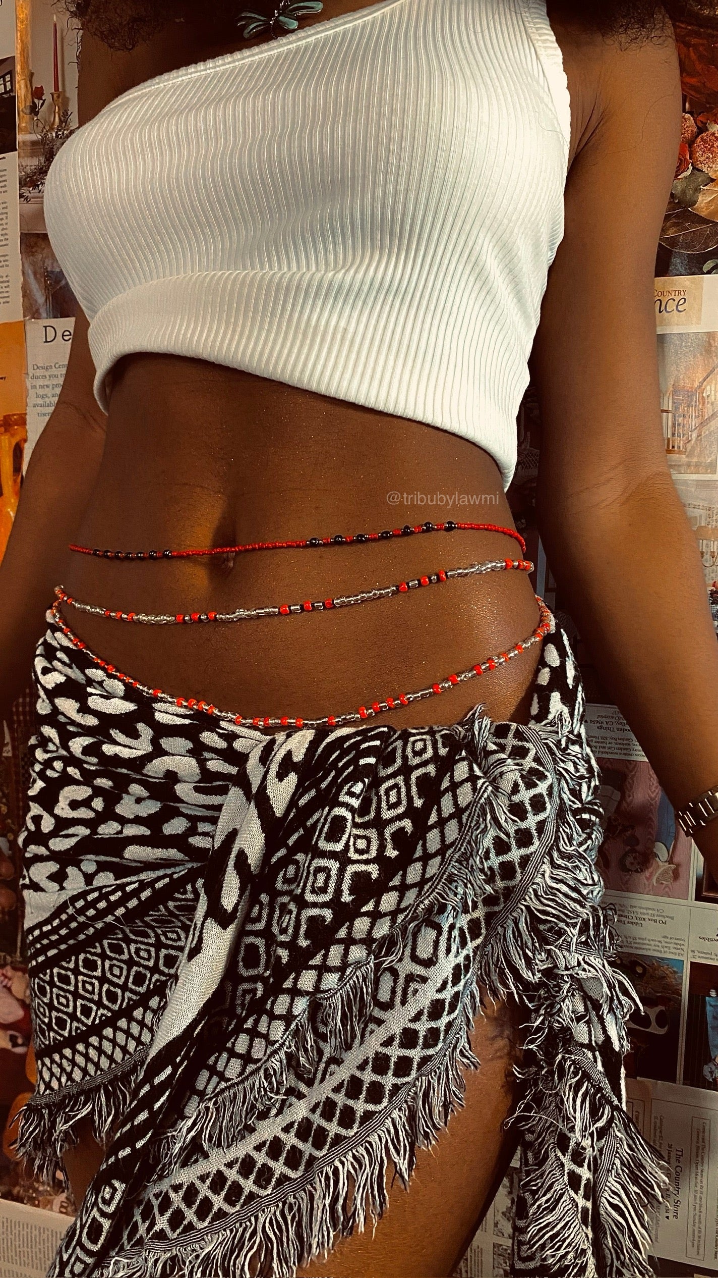 Mesurez vous en bas du nombril et sélectionnez la taille qui vous correspond. Cette mesure correspondra à la pièce maîtresse de l’ensemble. Nous enlèverons 2cm sur les 2 autres pièces pour obtenir l’effet décalé comme sur nos mannequins.