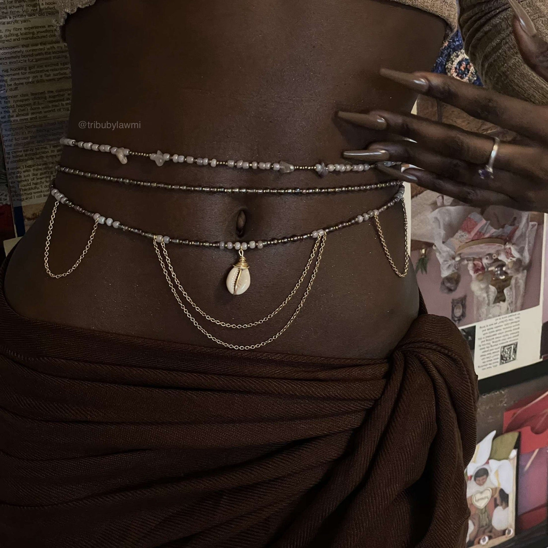 Mesurez vous en bas du nombril et sélectionnez la taille qui vous correspond. Cette mesure correspondra à la pièce maîtresse de l’ensemble. Nous enlèverons 2cm sur les 2 autres pièces pour obtenir l’effet décalé comme sur nos mannequins.