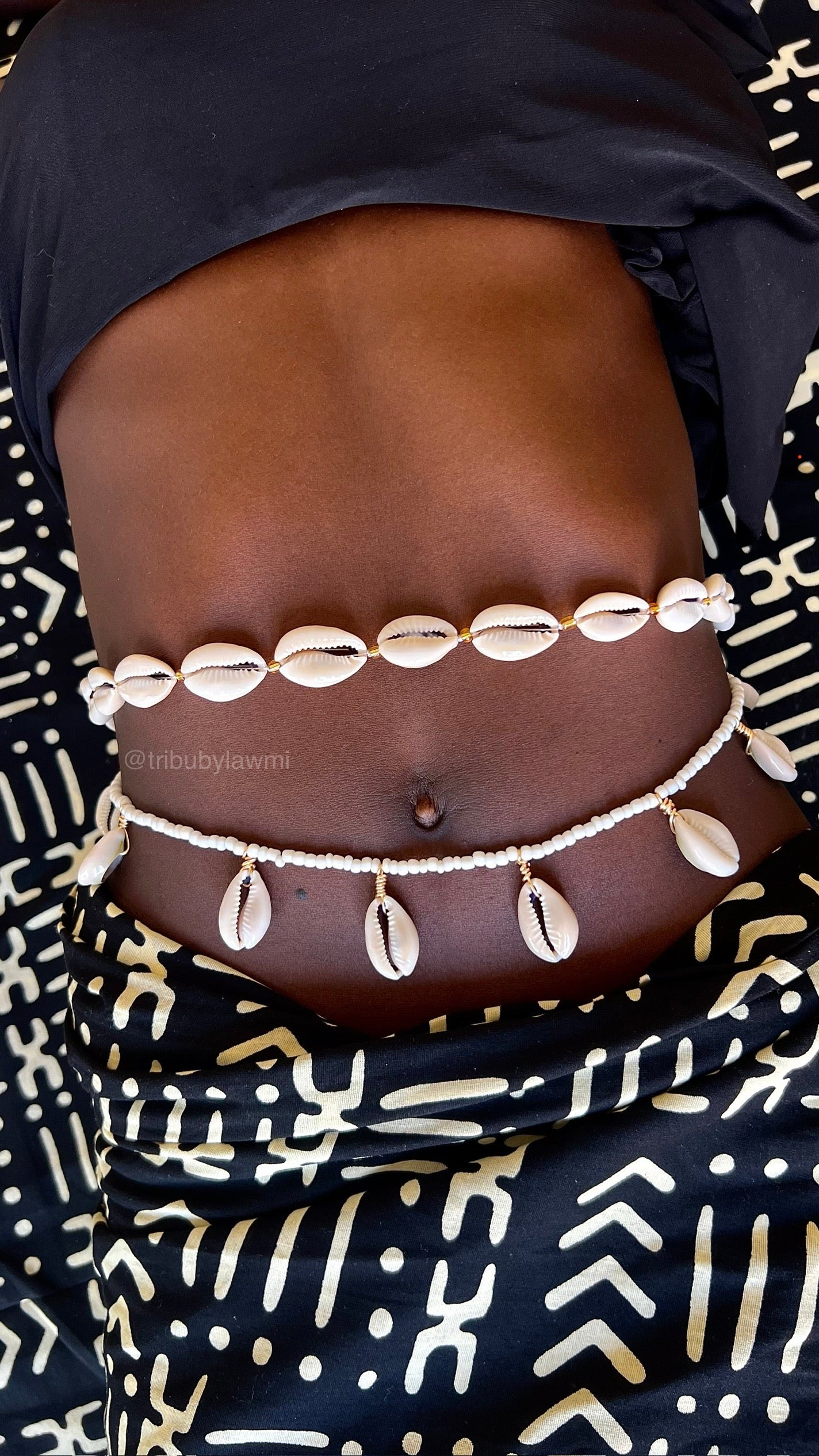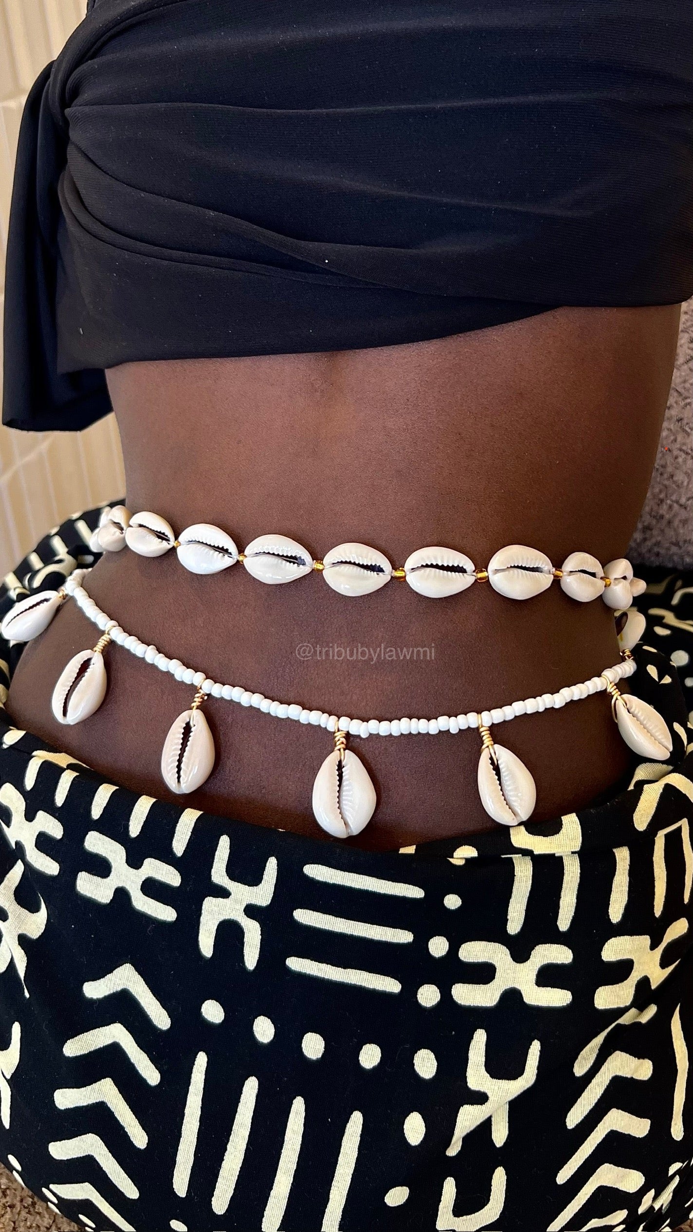 Ensemble de 2 Bayas, soigneusement confectionnés avec des coquillages africains et des perles blanches.